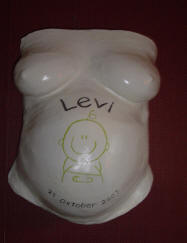 De afdruk wordt gemaakt van buik en/of borsten en kan naar wens worden gedecoreerd.